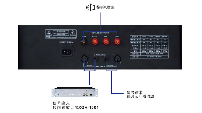 ● 1路RCA音源插口和1路ⅩLR音源插口输入;1路RCA音源插口和1路ⅩLR音源插口输岀,方便级联下一台后级功放