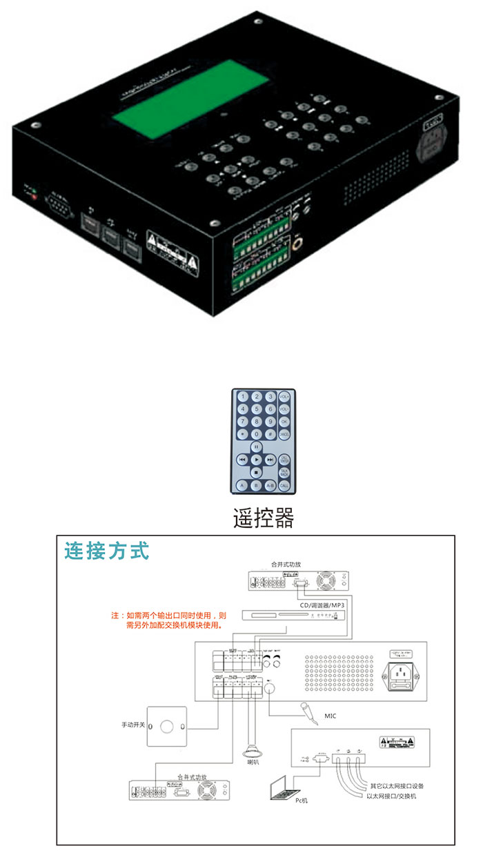 ● 内置网络IP解码模块,支持TCP/P、UDP、IGMP(组播)协议实现网络化传输16位立体声CD音质的音乐信号