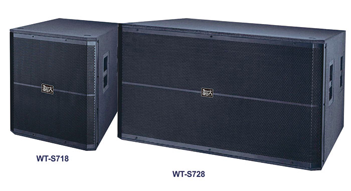 ● WT-S728是一款双18寸超低音箱。采用两只18寸100芯超低音单元,直射式箱体设计,箱体采用多层复合夹板,特殊喷涂制作。高质量单元配置,高强度夹板箱体,直射式设计,低音强劲自然,超长品质保证期,品质与信心的保证。适用于有超低音重放需求的高级卡拉OK包房、慢摇吧、多功能厅、高级酒店会所、流动商演、乐队扩声。