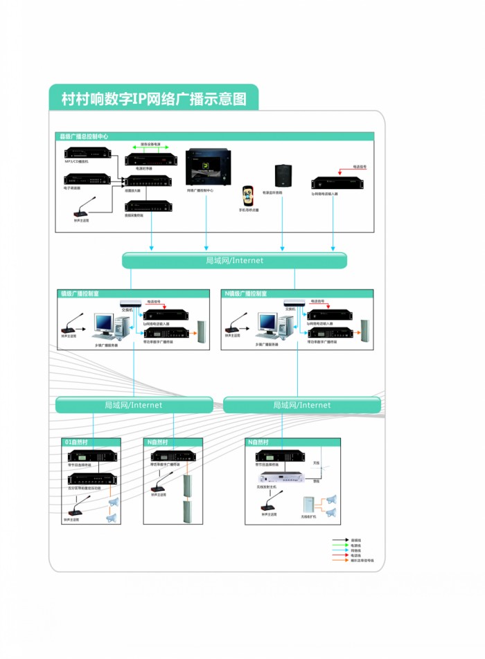 为健全农村广播电视服务体系,满足农村群众日益增长的精神文化需求,全面实现政府部门对农村的日常广播和应急广播,需建立一套覆盖面广的高性能“村村响广播系统”。利用农村现有的网络,来制定一套高效、可靠、稳定的“IP网络村村响广播系统”。
