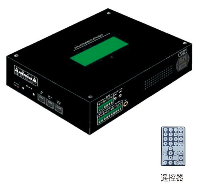 ● 五英寸LCD液晶量示屏,量示点播目录及当前任务信息 红外遥控器,点播服务器节目库任意内容,可控制循放否停,快进/快退,A-B复读操作灵活简单